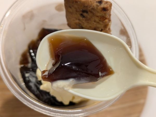 コーヒーゼリーに合う深みのあるコーヒーを使用した、自家製コーヒーゼリーは、つるんとしていて、モチっと弾力があり食べ応えがあります。コーヒーの苦みと甘いアイスのコンビが最高でした。