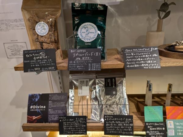 こちらのカフェは、ハンドドリップの珈琲とスイーツ、占いも楽しめるスペースになっています。ガラス張りで外から中が見えるので、フラッと入りやすい雰囲気ですよ。「Fortune cafe」とお店のロゴに書かれているように、運気の上がりそうな癒しグッズが壁際に並べられています。