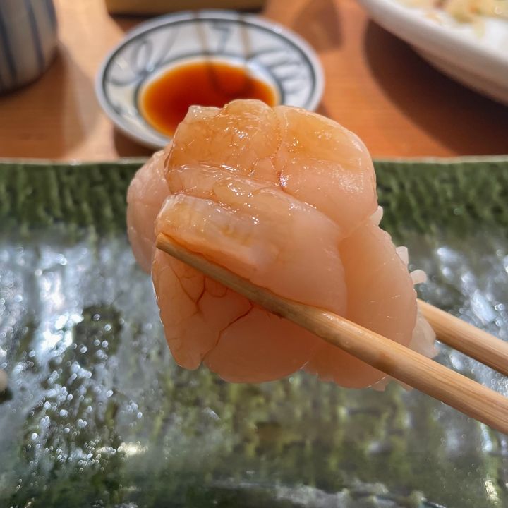 ぶりぶり弾けるほたてが二段に積まれたお寿司は、他にはない贅沢感を味わえます