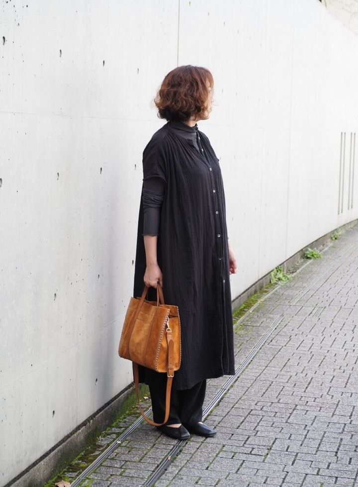 【スナップ】モノトーンコーデに映えるキャメルのスエードバッグで秋らしく