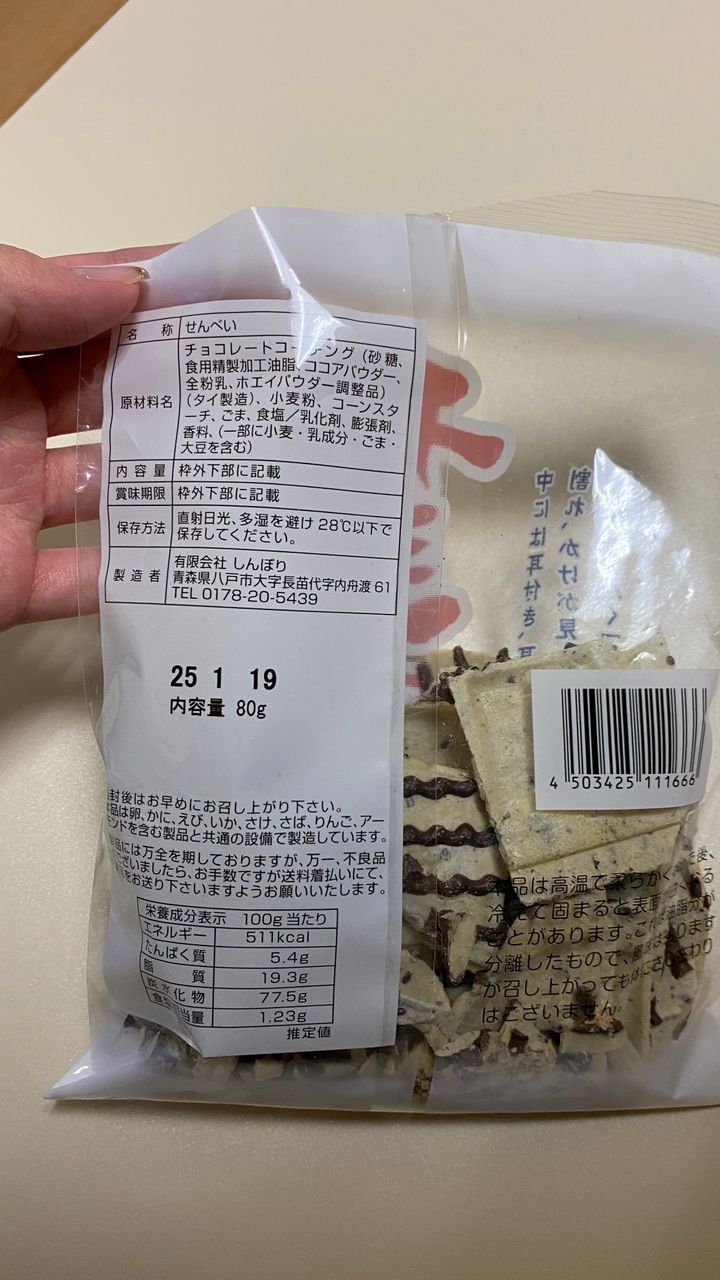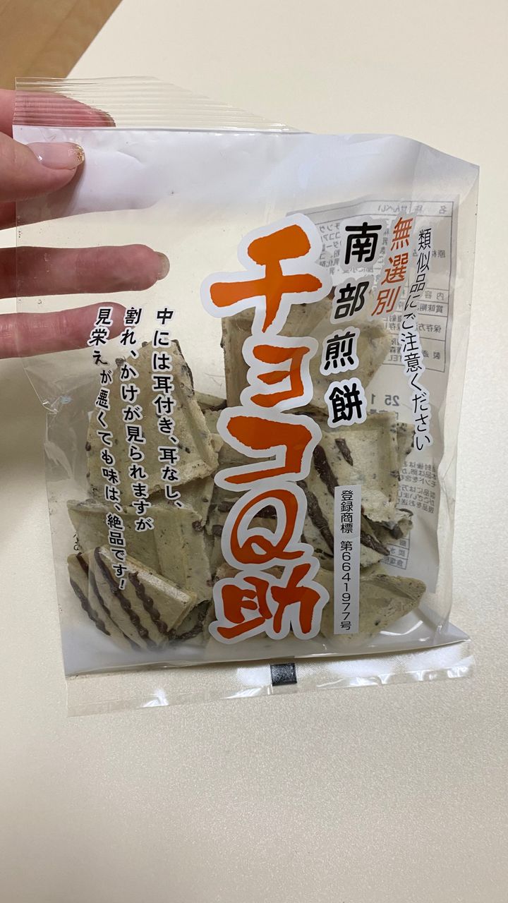 青森県八戸市の伝統菓子・南部煎餅にチョコレートをかけた商品です。