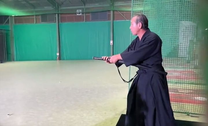 160kmのボールを刀で斬る瞬間をご覧ください。