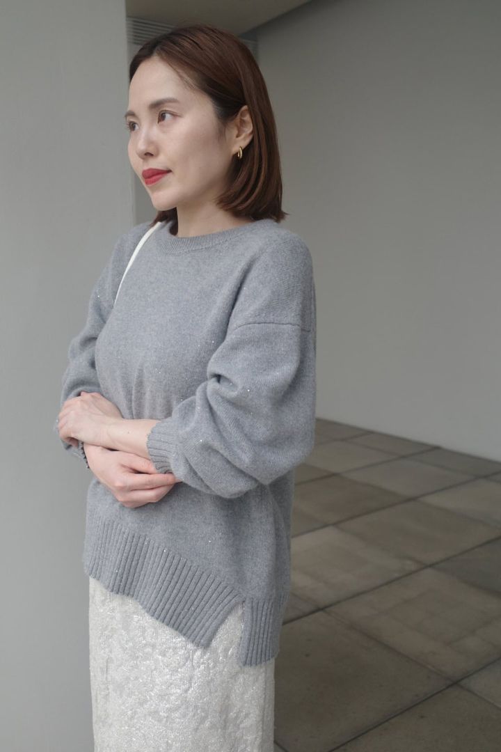 「ROPÉで毎冬人気がある“カシミヤブレンドニット”。スパンコールを撚糸しているので、ほどよく華やかな仕上がりに。デニムなどカジュアルなボトムとの合わせでもほっこりしすぎることなく、キレイめにまとまります」ニット¥26,400(ロペ/ジュンカスタマーセンター)