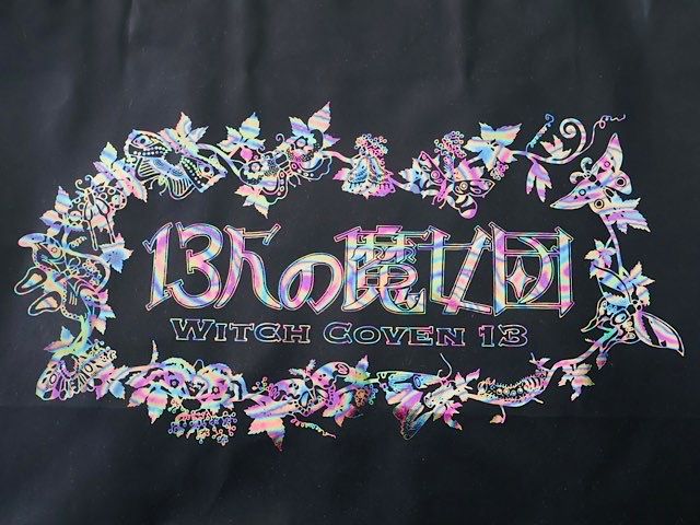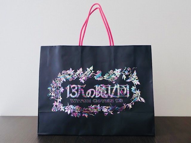 13人の魔女団の手提げ袋は、S(150円)、M(300円)、L(350円)、LL(550円)の全4種類。サイズごとに持ち手の色が異なります。(写真はMサイズ)