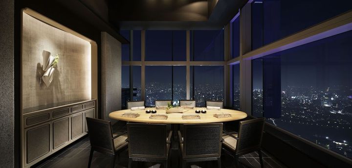 ザ・リッツ・カールトン東京」の「ひのきざか」には写真の「セミプライベートルーム」の他、囲炉裏のある「黒松庵」、カウンターのついた「シェフズテーブル」があり、人数や雰囲気などによって選べるのが嬉しい。高層階からの絶景を楽しみながら、家族の絆を深めることができます。