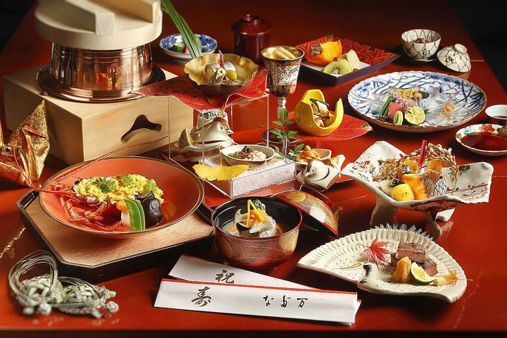 約200年という長い歴史をもつ「なだ万」の「祝い懐石料理」。伝統を守りつつ、常に新鮮さを追い求める料理の数々は、両家が過ごす祝いの席にふさわしいものとなっています。