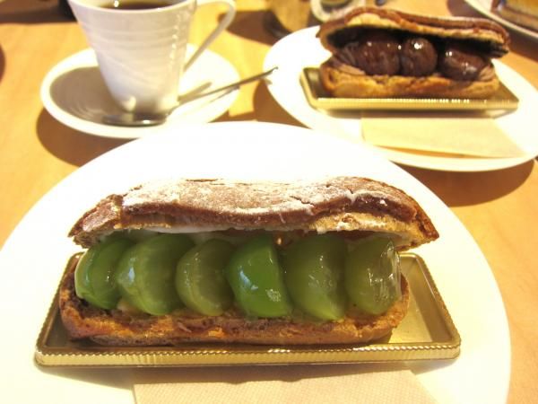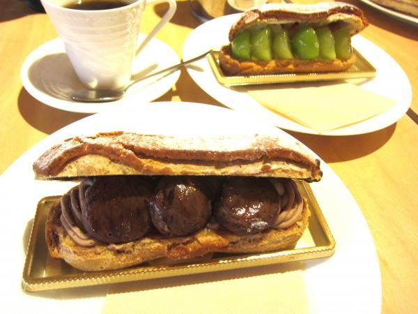 エクレア生地に、マロンクリームと栗の渋皮煮が並んで、リッチで美味しい~~。