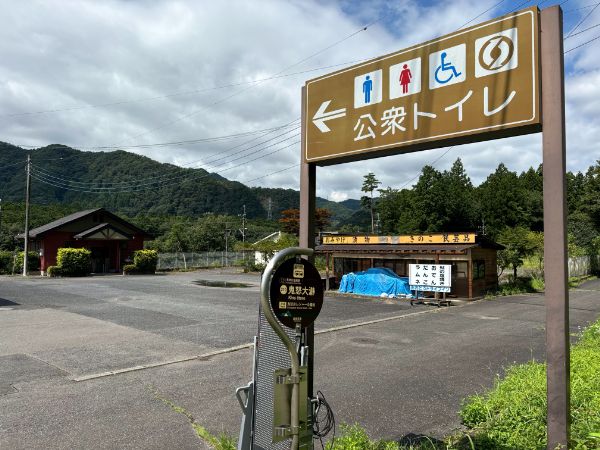 ドライブインということもあり、広々とした駐車場が完備され、車で訪れる人にも便利です。敷地内の奥には公衆トイレもあるので24時間いつでも利用可能。まるで道の駅のような雰囲気を味わえます。