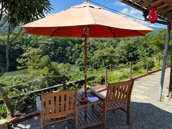 「大瀞ドライブイン」の最大の魅力は、絶景が見えるロケーション。開放感あふれるオープンテラスです。