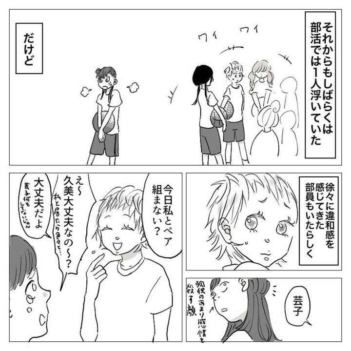 バスケ部に入部した芸子さんと芽衣。初めは楽しく部活に励んでいました。しかし、中学に入ってから仲良くなったマナが主犯格となり、芸子さんへの無視やいじめが始まります。