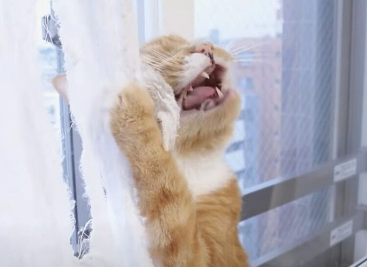 3. カーテンが大好きな猫さん、ここまで遊ぶと見てて清々しいな!