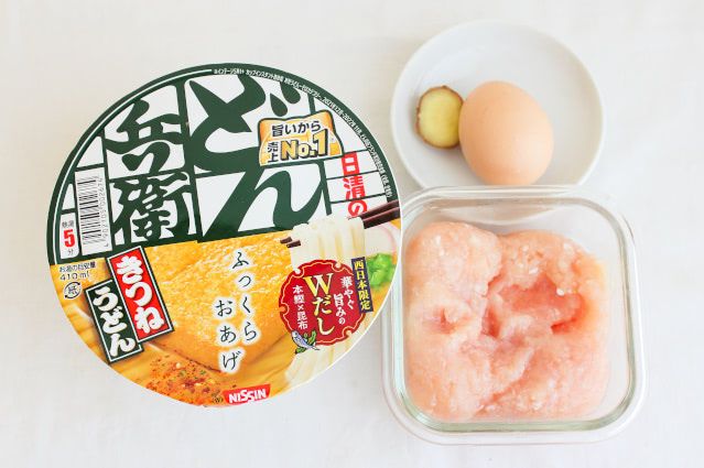 これまで日清の公式レシピにいくつか挑戦してきた筆者。砕いたカップヌードルを炒飯やドリア、ポテトサラダにしたり、残ったラーメンスープをアイスソースにしたりとどれも驚きの一品が作れました。そして今回見つけたのが、日清のロングセラーカップうどんを使った「どん兵衛鶏つくね」です。おだしのおいしさと甘いおあげが特徴のうどんなのに、砕いて鶏ひき肉に混ぜ込んじゃうなんて…。でもおいしそうなので作ってみます!