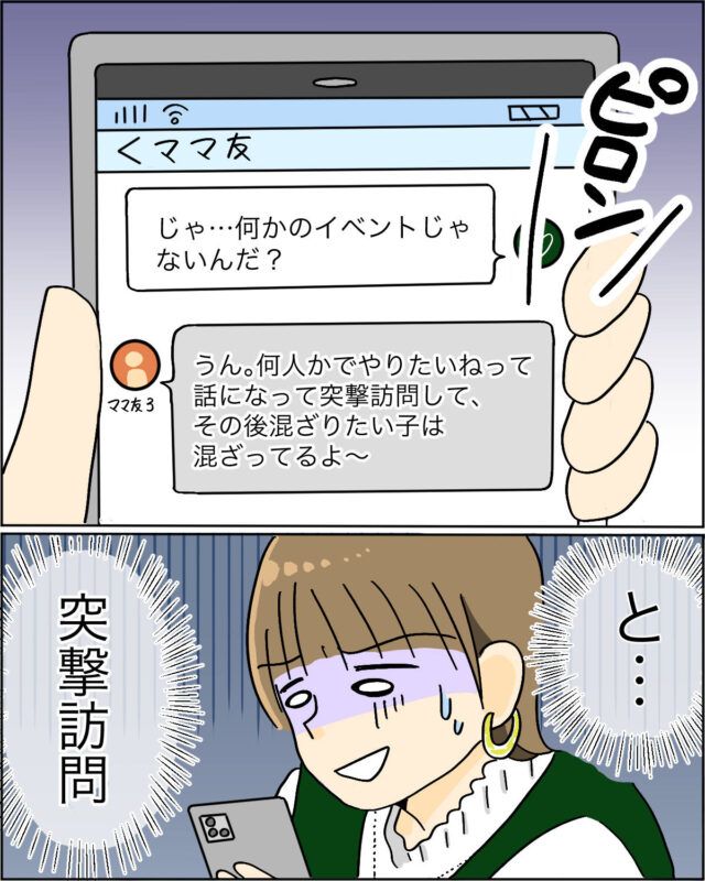 3. 「突撃訪問してる」と軽い報告をするママ友に絶句。子どもたちの突然訪問[2-2]|ママ広場マンガ