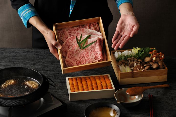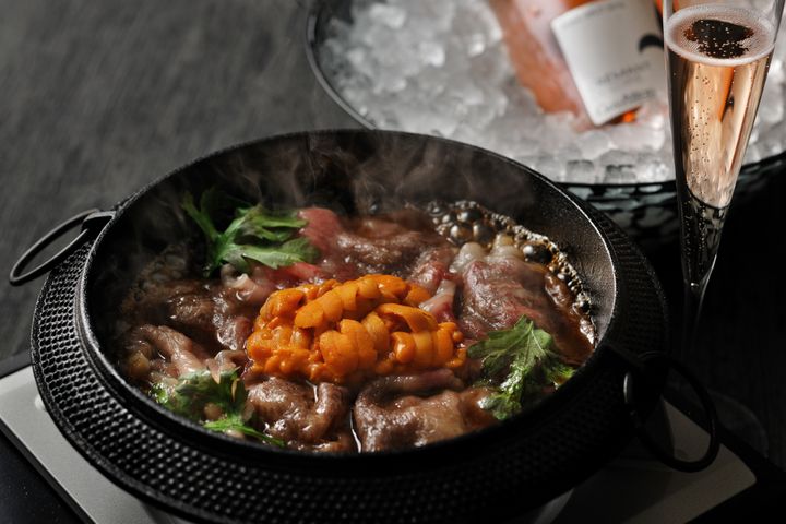 「界 仙石原」では山海の幸を味わう「雲丹と牛のすき鍋」が味わえます。甘辛く味付けされた割下と雲丹の甘みが口いっぱいに広がって幸せな気分に♪