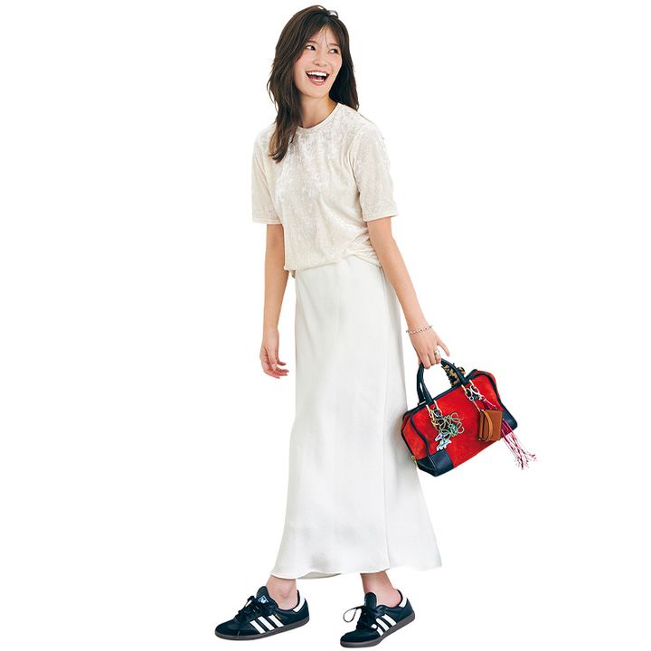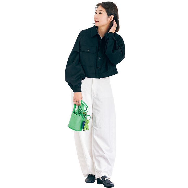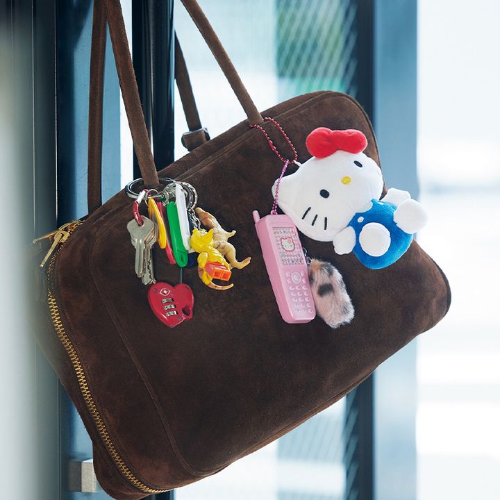 SEAのお洋服にも馴染むmiumiuのスエードバッグに、子どもの頃大切に集めていたキーホルダーをじゃらづけして「わたしだけのバッグ」にバージョンアップさせるのがマイブーム。時を経て新鮮な気持ちで愛用できる、懐かしいのに新しさを感じるのがじゃらづけチャームの楽しいところです。