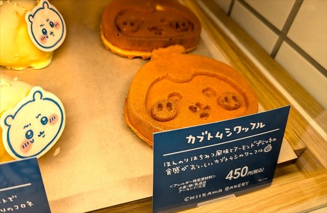 作中キャラの「カブトムシ」の形をしたワッフルには、アーモンドプラリネが入っており、サクッとした食感が特徴。表情もとってもキュート。