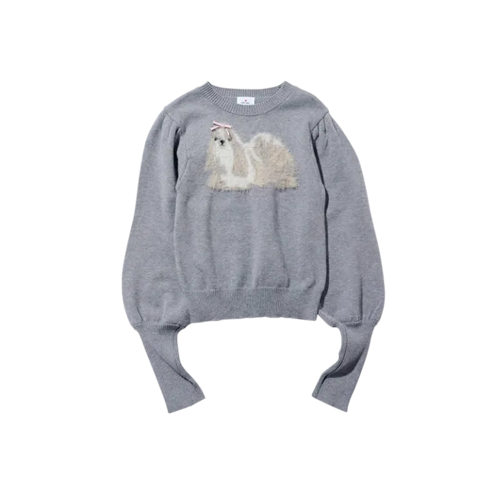 ヴィンテージライクなわんちゃんニット。萌えそでできちゃう長めのそで丈などシルエットもガーリーなのが◎。