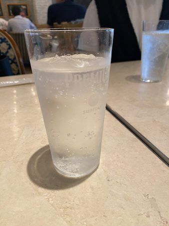 そして最後になりましたが、このお店の人気の秘密はこちら。 お水ではなく炭酸水が出てきます。濃厚なパスタに合うんです。しかもちょっと少なくなるとスタッフの方がすぐについでくれました。こういうところが人気の秘密だと思われます。