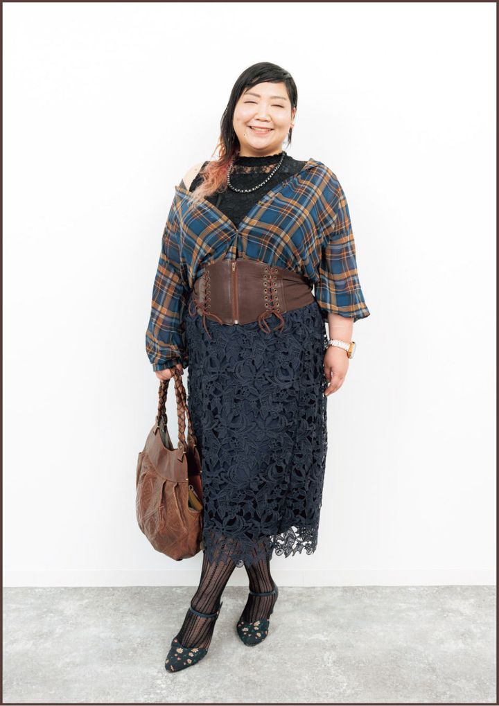 太ベルトでくびれを強調