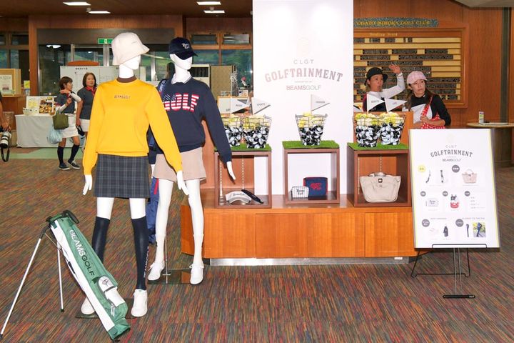 「BEAMS GOLF」のアパレルやグッズが展示されたブース。多くの参加者が足を止めて、製品をチェックしていました
