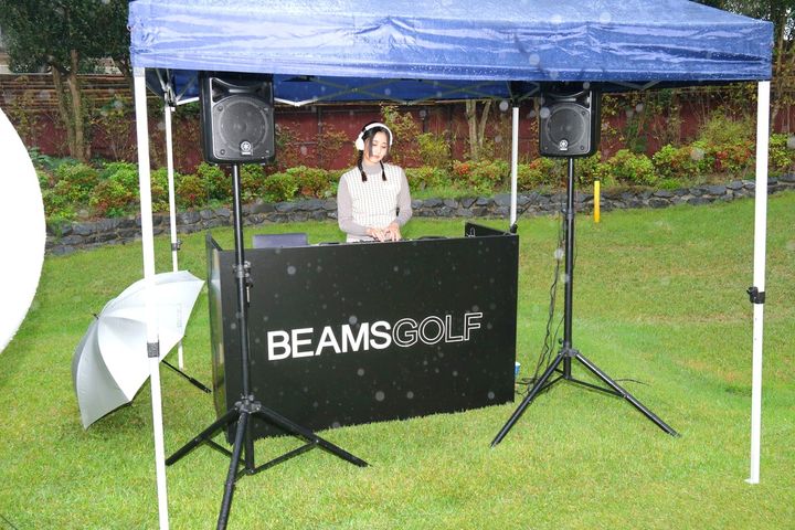 また本イベントでは、FASHION、BEAUTY、MUSIC、SPORTS、LIFEの5つのテーマに合わせた楽しい企画が用意されており、クラブハウス内には、「BEAMS GOLF」の最新アパレルやグッズを展示。TAKEFREEのティやコインマーカー、グリーンフォーク、ステッカーも用意され、参加者は思い思いのアイテムを手に笑顔でコースへと向かって行きました。