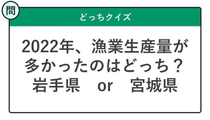 3. 【どっちクイズ】2022年、漁業生産量が多かったのはどっち?岩手県 or 宮城県