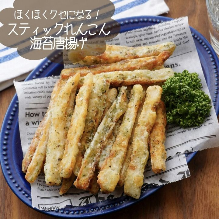 れんこんのホクホク感が楽しめる、れんこん海苔唐揚げ。海苔しお味でシンプルながらに奥深い味わいです。