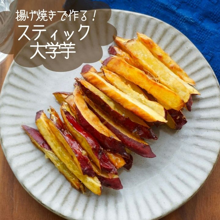 子どもから人気の高い大学芋を、スティック状にして食べやすく仕上げました。揚げ焼きで作るので、面倒な油の処理も不要ですよ。