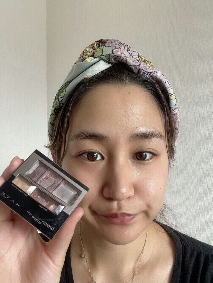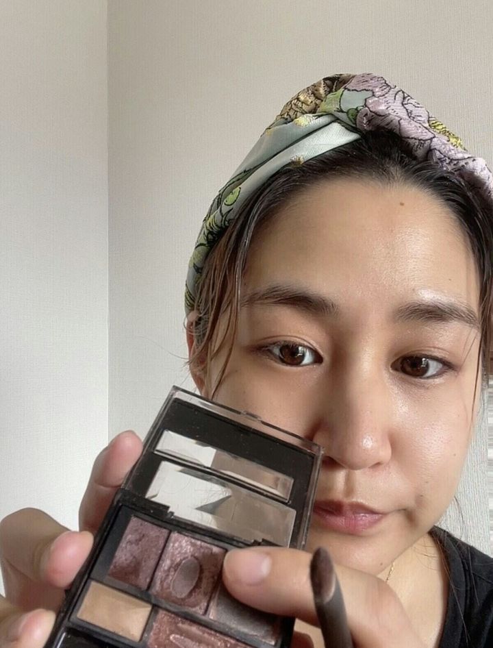 濃い目の色もどんどん使います。まぶたに対して広めにのせるのがポイント。