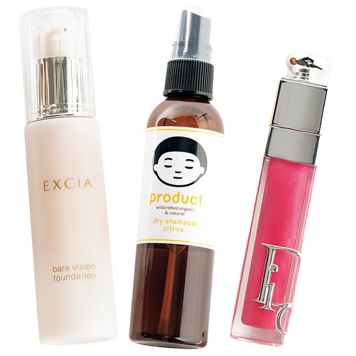 エクシアのファンデは汗をかいても崩れにくく優秀。ザ・プロダクトのドライシャンプーは、頭皮やワキにも使えてニオイやベタつきをオフしてくれます。Dior マキシマイザーは薄づきのラズベリーカラーの007で血色感をプラス。
