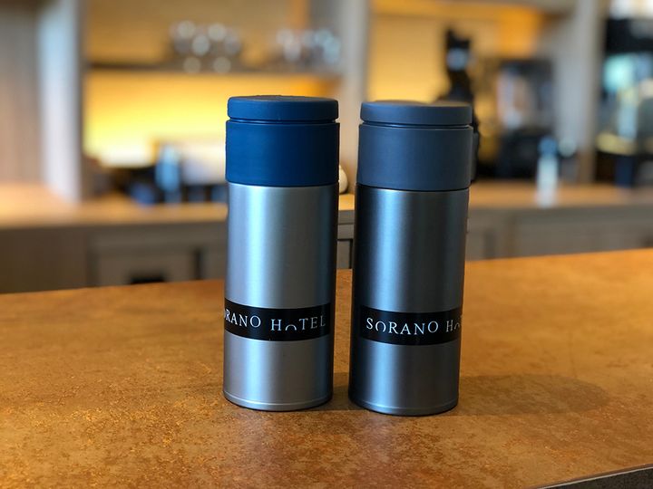 朝の7時から22時まで宿泊者にコーヒーや紅茶のサービスも。 貸し出し用のサーモスのタンブラーに入れてくれるので、客室への持ち帰りはもちろんホテルからの持ち出しもOK。21〜22時には日替わりのスープがいただけます。夜食にもぴったりです!