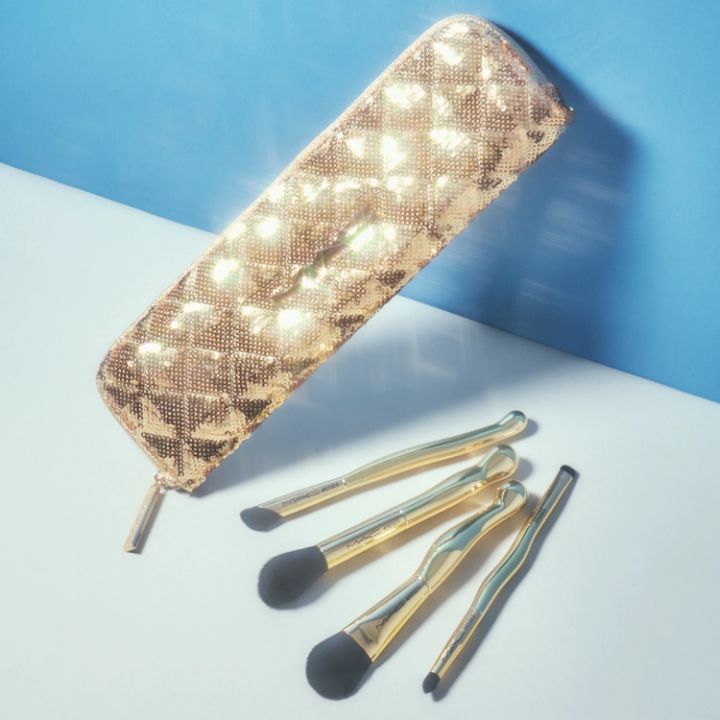 アイシャドウブラシやコンシーラーブラシなど、普段メイクでも必須の4本とゴージャスなポーチのセット。