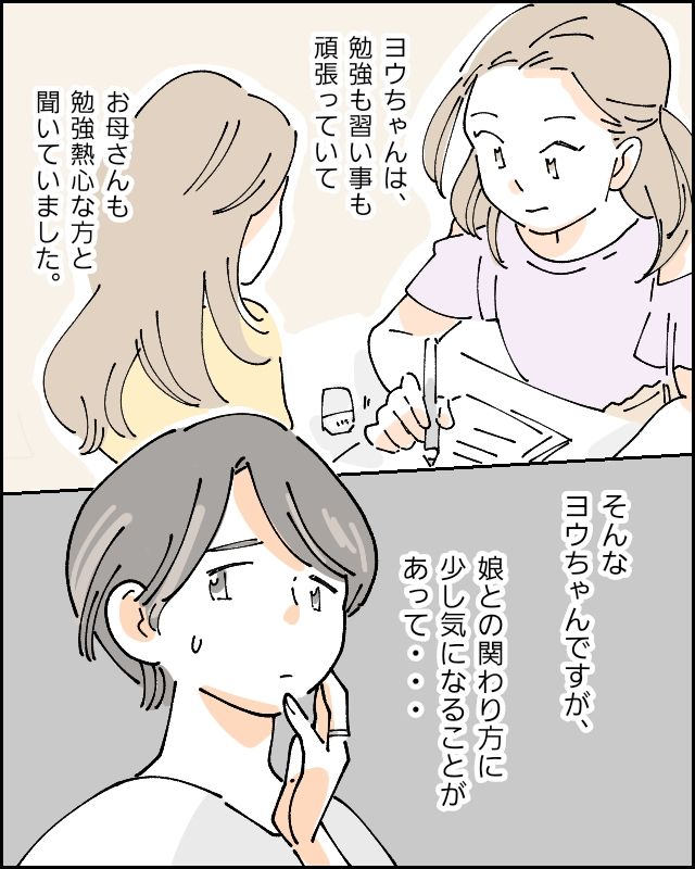 ヨウちゃんは勉強も習い事も頑張っていて、お母さんも勉強熱心な方だと聞いていたママは、ヨウちゃんのアイちゃんとの関わり方について、少し気になることがありました。