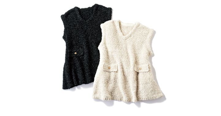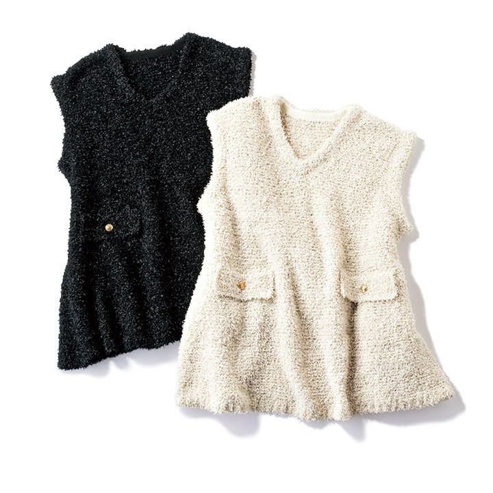 THREE SQUARE ファンシーヤーンニットジレ エクリュ、ブラック Price_20,900
