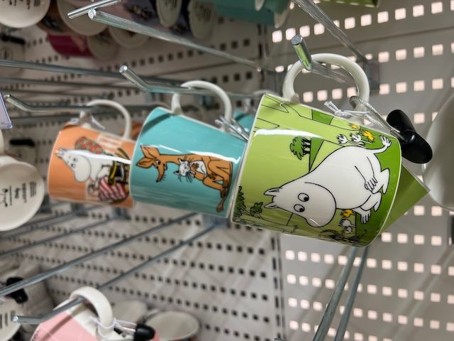 実は、先ほどのスーパーでも格安にARABIAが購入できます。お皿よりは、カップの方が品揃え豊富な印象がありました。例えば、先ほど前述したムーミンのカップは、こちらの方がリーズナブル! こちらも同じように先にスーパーを確認し、店舗で買いに行くのがおすすめです。