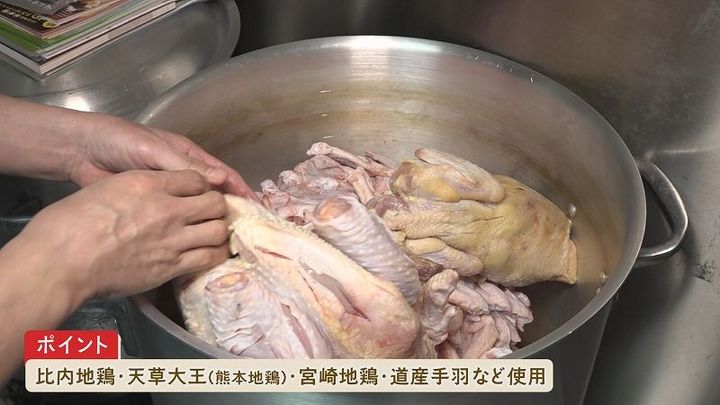 スープには、比内地鶏・熊本の地鶏 天草大王・宮崎地鶏・道産の手羽などを使用。