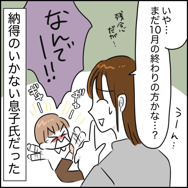 「いや・・・まだ10月の終わりの方かな?残念だが・・・」息子には申し訳ないけれど正直にそう答えると、「なんでー!!」と納得がいかず大荒れの息子でした。