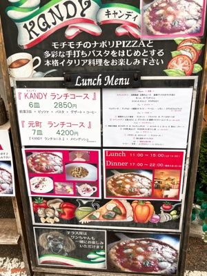 お友達おすすめのお店「Italian&Tea Room KANDY」。 ランチ2850円で前菜3皿、ピッツア、パスタ、デザート、ドリンク。