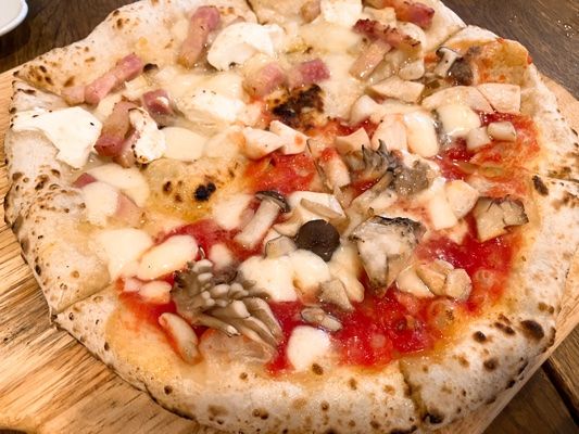 3人で行ったので2種選びました。ベーコン・レモン(珍しい!)、アンチョビと3種類のキノコ