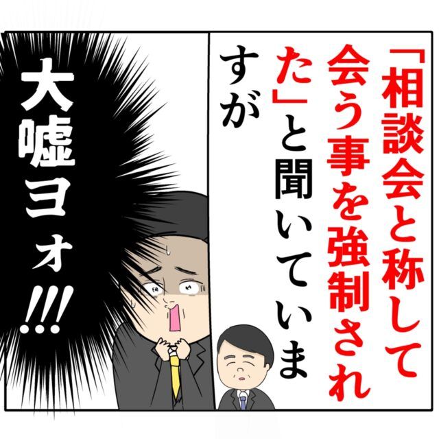 続けて「あと・・・『相談会と称して会う事を強制された』と聞いていますが』とまたしても驚きの主張をしていたふり子さん。良し男さんは心の中で「大嘘ヨォ!!!」と叫びます。