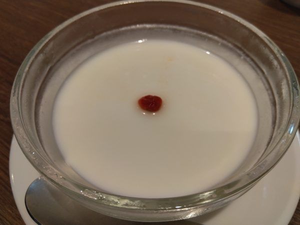 食事を食べ終わる絶妙なタイミングで、冷たく、美しい杏仁豆腐が出てきましたよ。デザートまで付いているランチセットは、コスパ良きですね。