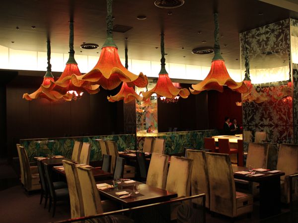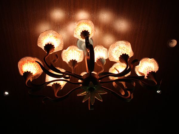 カンナの花をモチーフにしたライトなど、落ち着いた雰囲気のインテリアがステキな店内です。