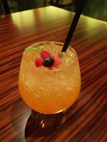 オレンジジュース、ジンジャーエールに、マンダリンオレンジとザクロのシロップをプラス。カボチャをイメージしたオレンジ色のドリンクは、目でも楽しめます。