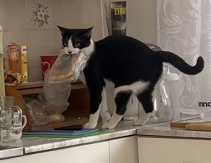 3. 今日のお昼はコレ! キッチンで堂々とイタズラする猫さん。