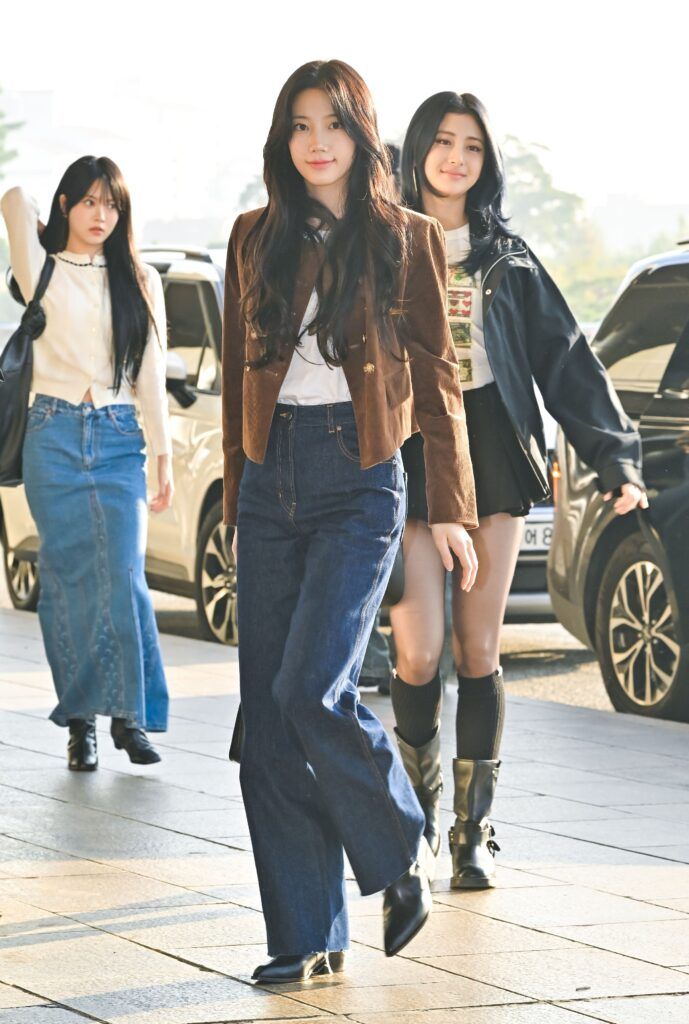 3. 【LE SSERAFIM・カズハ 空港ファッション】ブラウンのジャケットを着こなす上級者コーデ