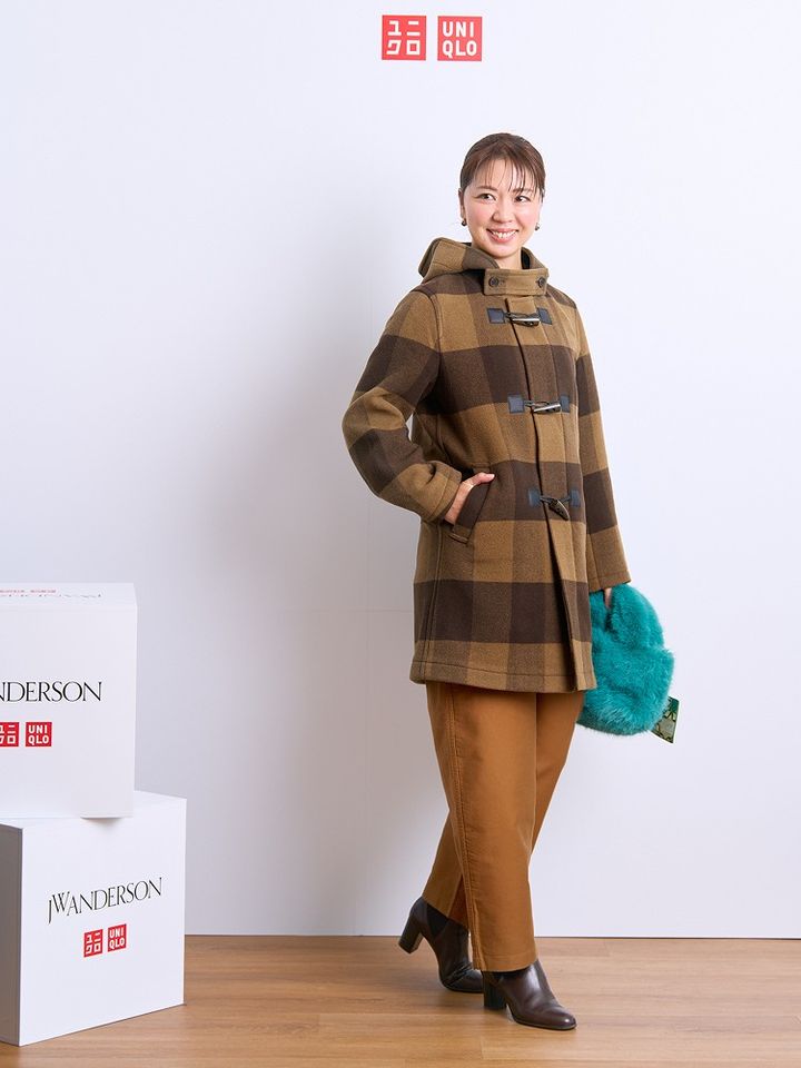 ウールブレンドダッフルコート¥14,900 カーブパンツ¥4,990(ともにユニクロ アンド ジェイ ダブリュー アンダーソン/ユニクロ)※コートはMサイズ、パンツは64サイズを着用 パンプス、バッグ(ともに私物)
