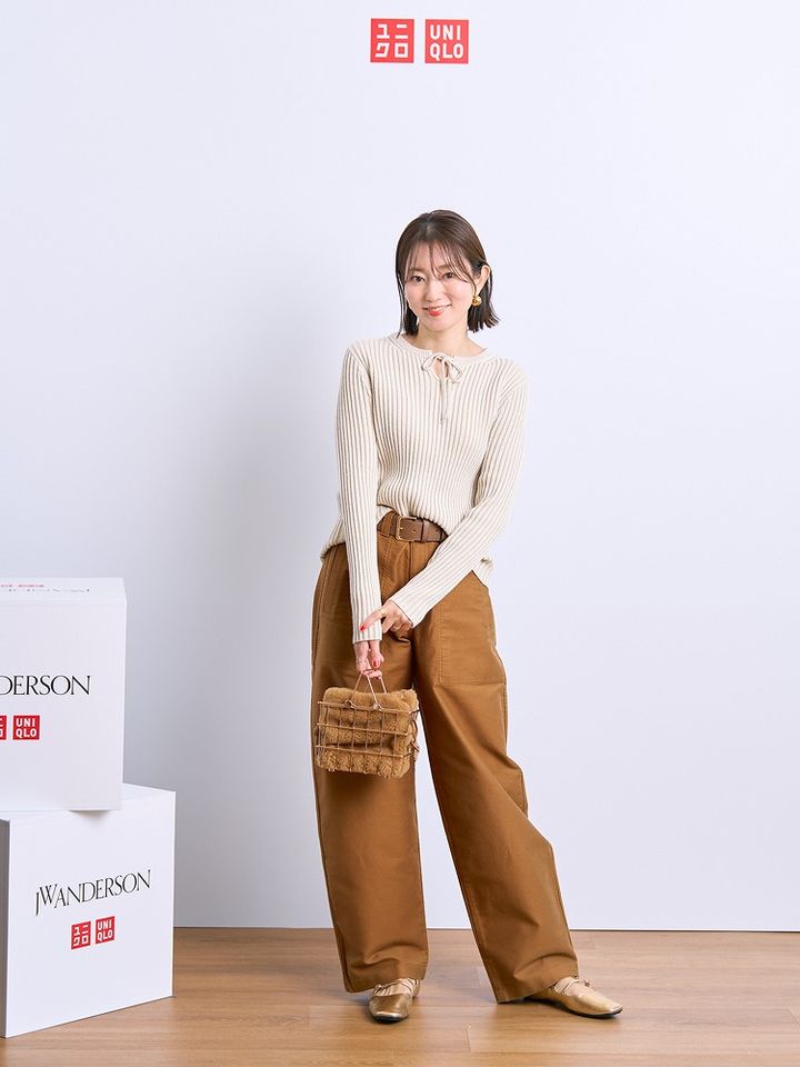 リブタイネックセーター¥3,990カーブパンツ¥4,990(すべてユニクロ アンド ジェイ ダブリュー アンダーソン/ユニクロ)※セーターはMサイズ、パンツは64cmを着用 靴、バッグ(ともに私物)