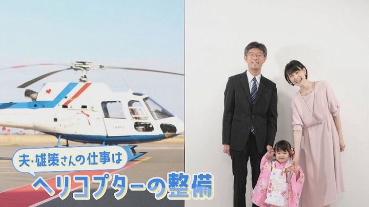 夫の雄策さんは、テレビ局などが上空から撮影するために使うヘリを整備しているんです!