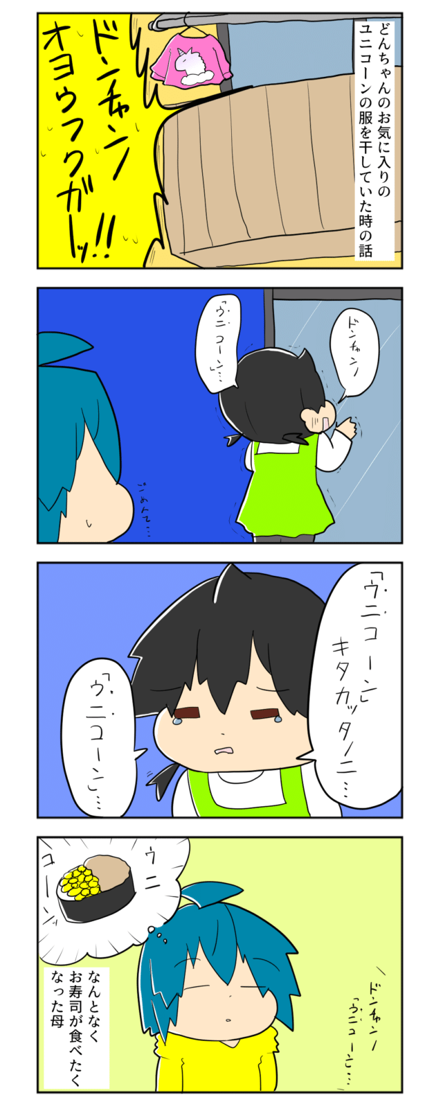 娘が叫ぶ「ユニコーン」が「ウニ」「コーン」に聞こえてお寿司が食べたくなった母