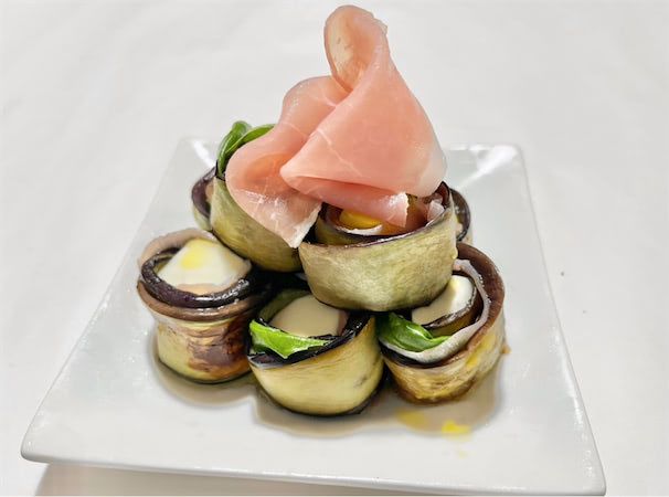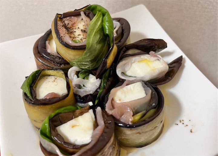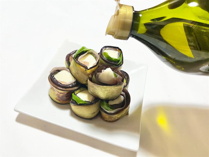 生ハムとチーズを香ばしく焼いたナスでくるくる♪バジル香る「冷製なすのチーズ巻き」が簡単で映える件